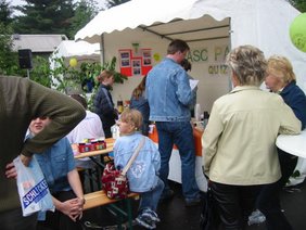Bei wechselhaften Wetter stellten sich unsere Cheerleader mit einem tollen Auftritt wieder einem breiten Publikum vor und wurden begeistert aufgenommen. Unser Familienverein präsentierte sich wieder mit einem Stand. Hier konnten sich die Besucher über unser vielfältiges Sportangebot informieren Für den kleinen Hunger und Durst wurde mit Getränken, Kaffee und Kuchen gesorgt. Unsere Jüngsten konnten auf unserer Malstrasse und einem Quiz ihr Talent unter Beweis stellen.