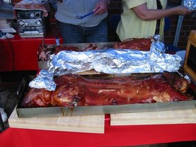 Für das leibliche Wohl wurde wieder an gewohnter Stelle gesorgt. Es gab außer vielen Getränken, Kaffee, Kuchen, Grillwürsten diesmal 2 Spanferkel, die sehr lecker schmeckten.